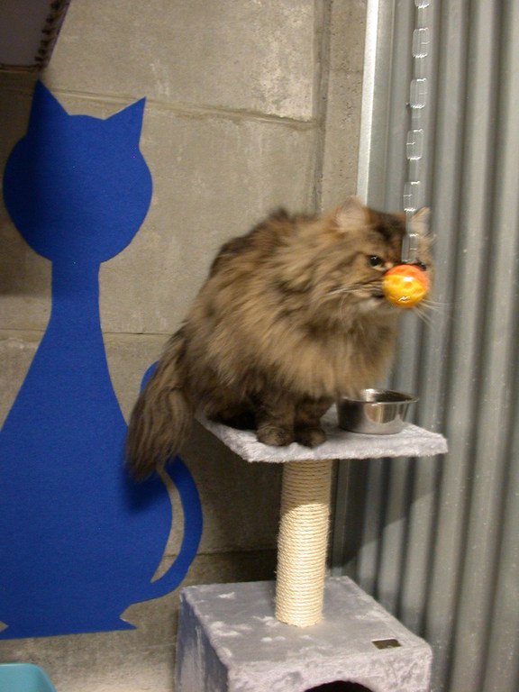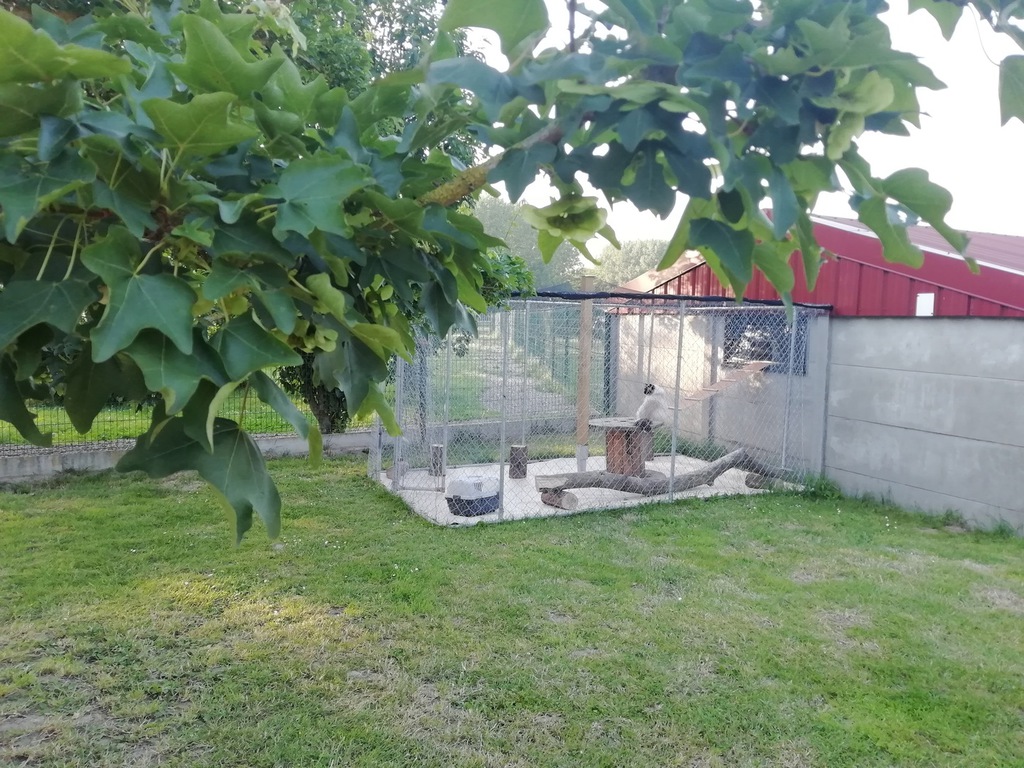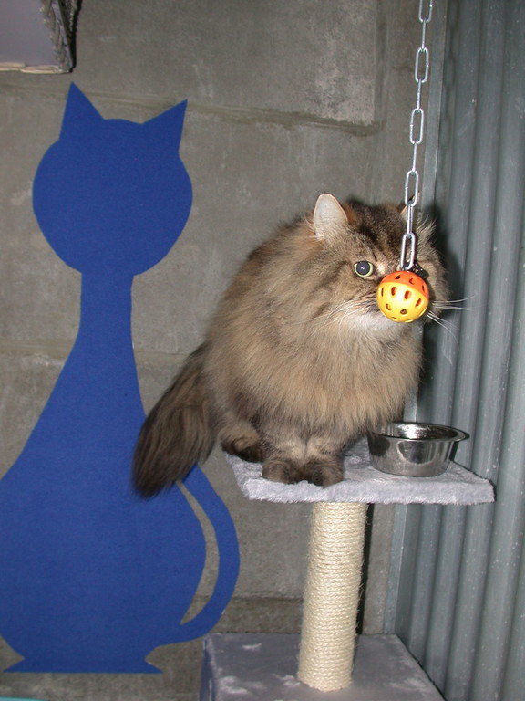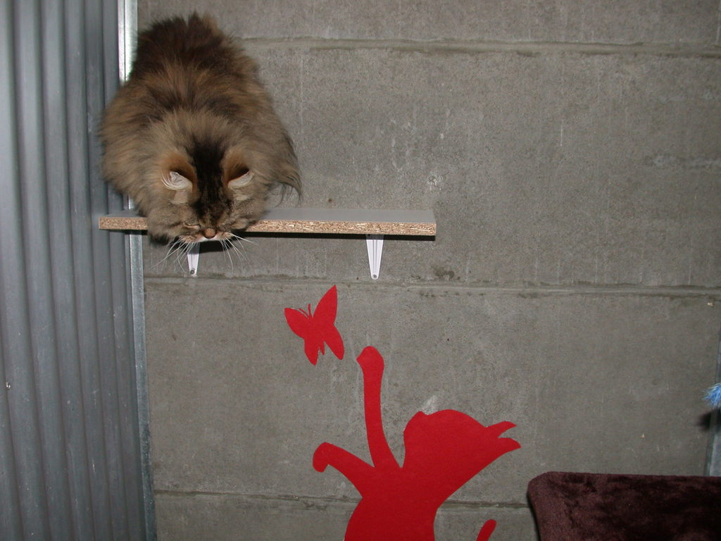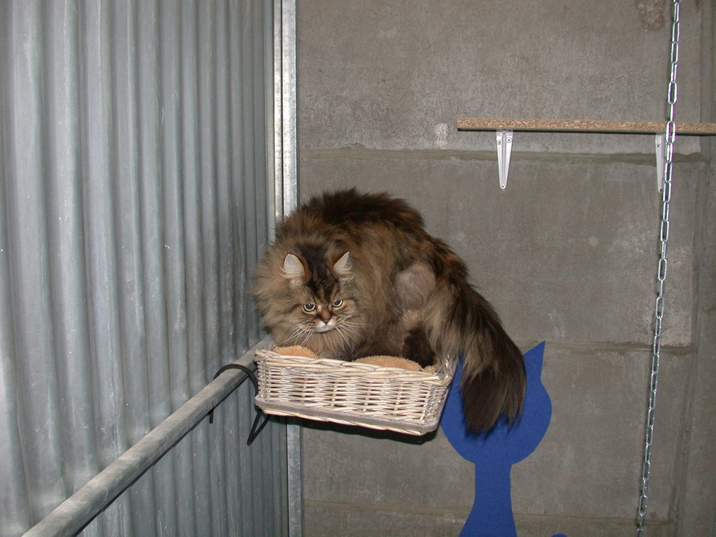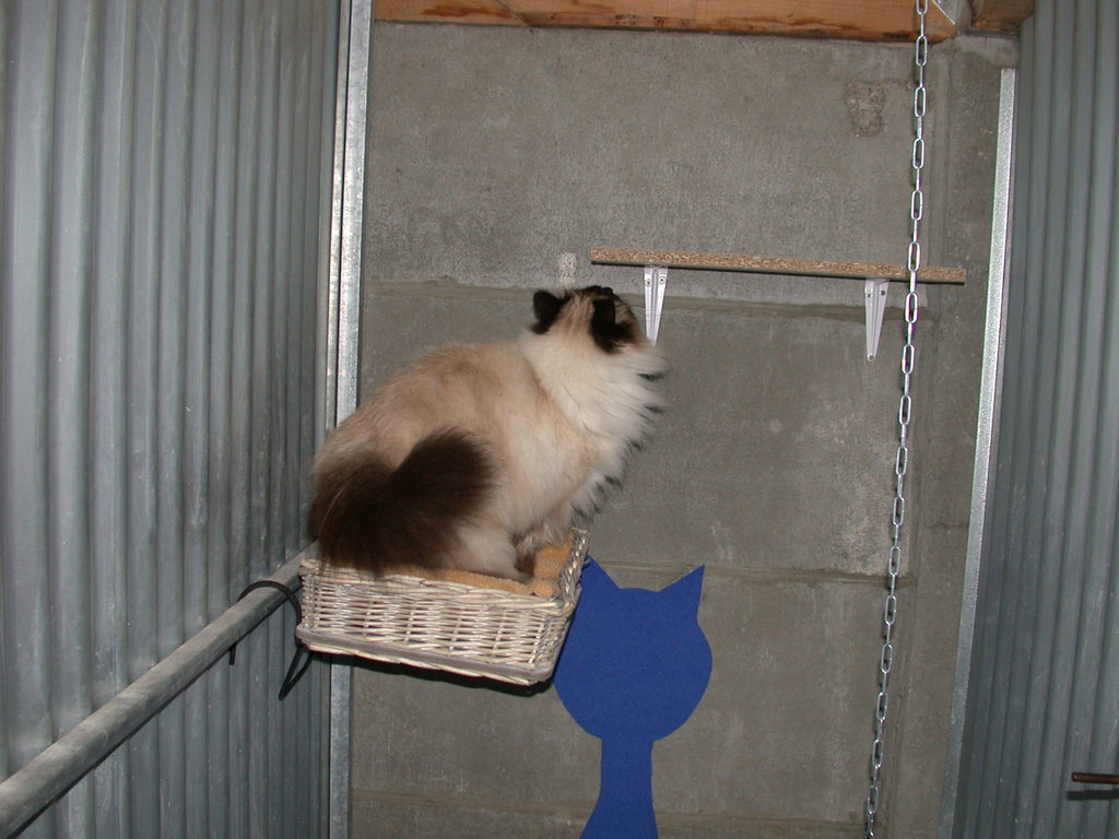 Les box sont aménagés de transat, coussin, étagère, arbre à chat, panier, tabouret......